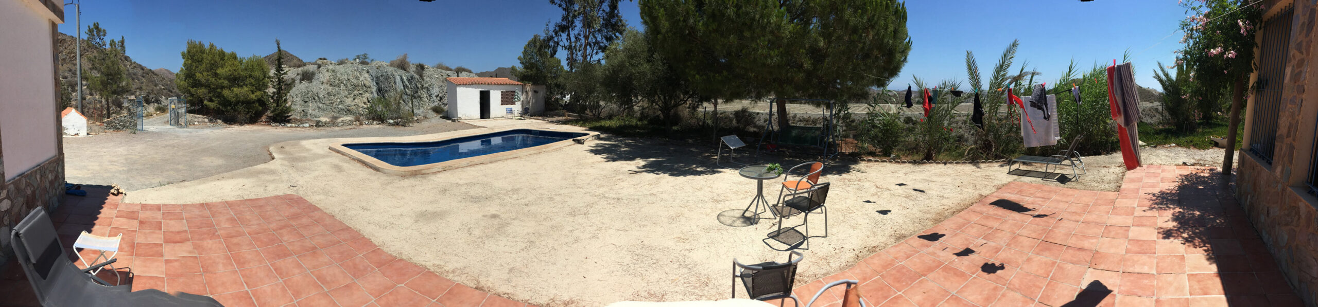 Naast de poort is het oude hondenhok. Dit gebruiken we als hok om de was op te hangen. Het kan wel eens erg waaien op de berg en dan is dit een prima plek om te zorgen dat jouw was niet wegwaait!